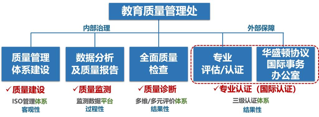 2022年3月天津大學成立教育質量管理處(簡稱質管處),深入推進教育領域管辦評分離。質管處是負責學校教育質量管理與質量保障工作的職能部門,系統開展質量管理、數據監測、評價診斷與認證評估等工作。