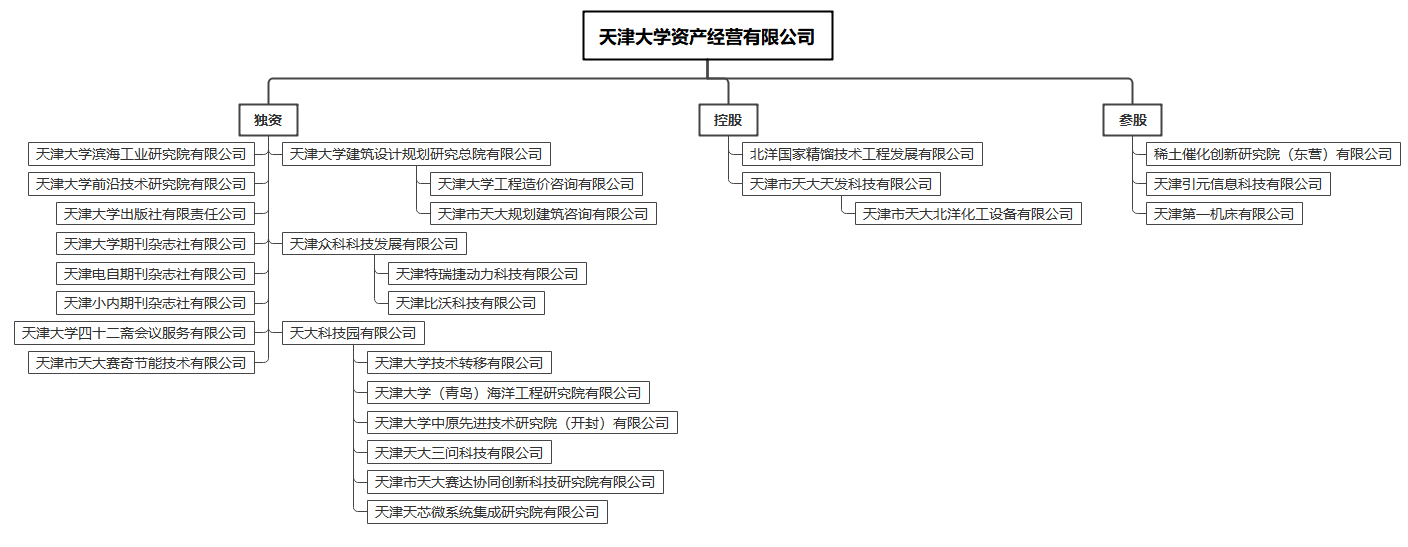 天津大學資產經營有限公司(以下簡稱“資產公司”)是天津大學根據《教育部關于積極發展、規范管理高??萍籍a業的指導意見》(教技發〔2005〕2 號)文件精神,依照《公司法》設立的獨資公司,于2007年成立,注冊資本1238.55萬元。