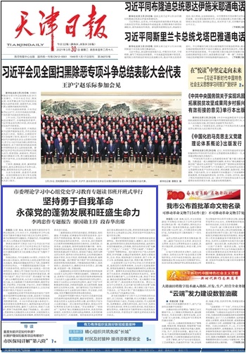 【建黨百年】天津日報頭版:堅持勇于自我革命 永葆黨的蓬勃發(fā)展和旺盛生命力