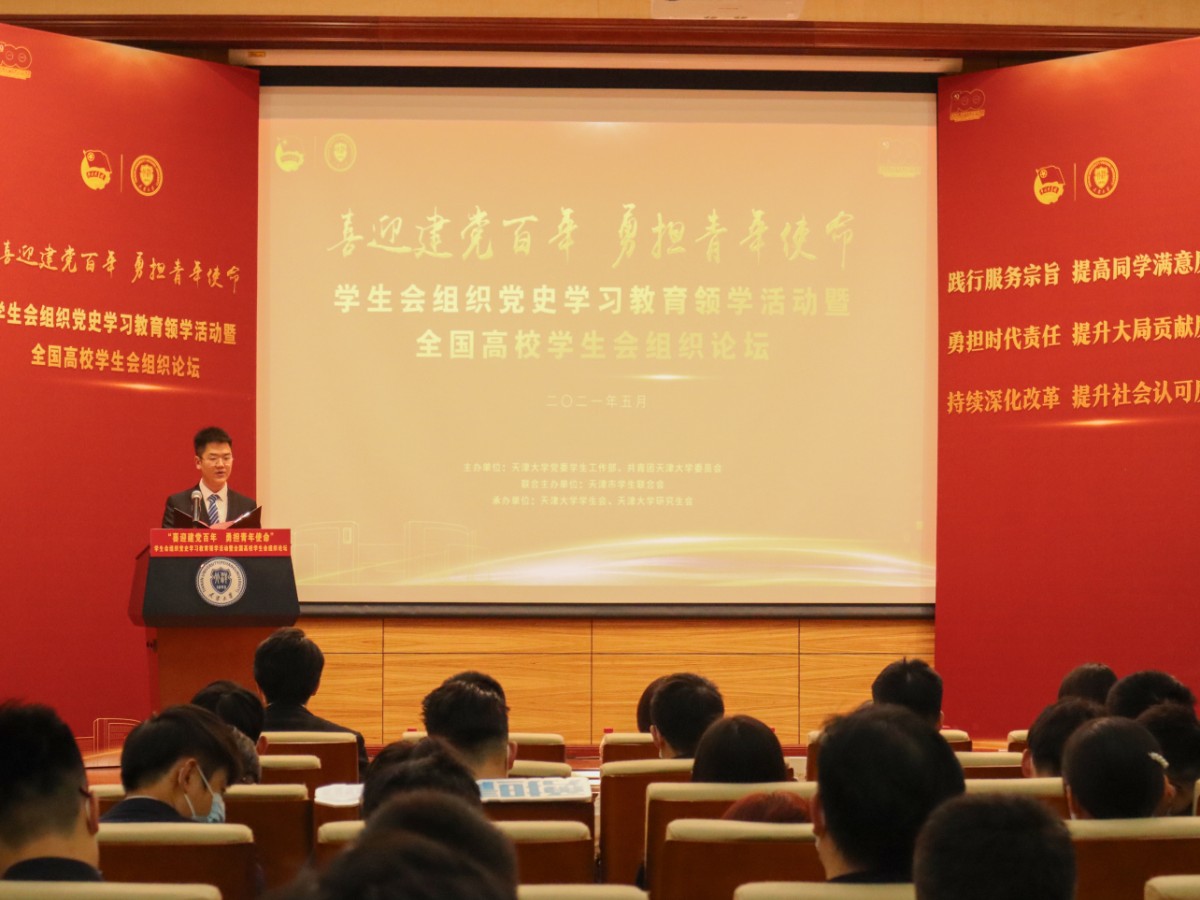 5月1日,“喜迎建黨百年,勇?lián)嗄晔姑睂W(xué)生會組織黨史學(xué)習(xí)教育領(lǐng)學(xué)活動暨全國高校學(xué)生會組織論壇在天津大學(xué)舉行,來自清華大學(xué)、上海交通大學(xué)等全國33所高校學(xué)生會、研究生會的代表們齊聚天大,共同學(xué)黨史、悟思想,加強新時代高校學(xué)生會組織的建設(shè)水平,更好地團結(jié)引領(lǐng)廣大青年同學(xué)成為堪當(dāng)民族復(fù)興重任的時代新人,用扎實成績慶祝建黨100周年。
