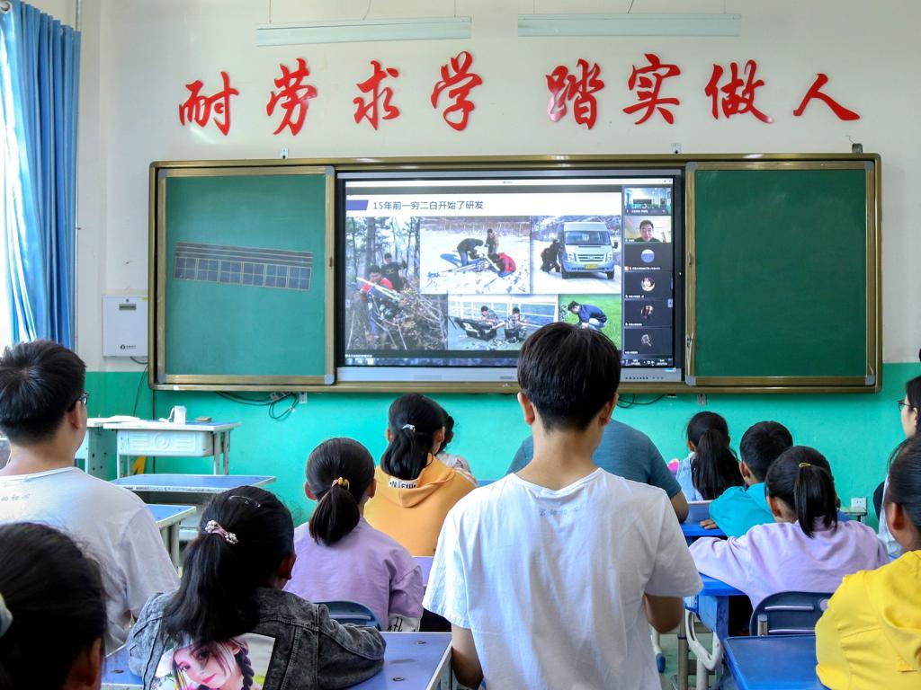 天津大學(xué)自動(dòng)化學(xué)院“宕動(dòng)初心”實(shí)踐隊(duì)還為宕昌當(dāng)?shù)氐暮⒆觽儙砹艘环萏厥獾亩Y物:他們邀請(qǐng)全國勞動(dòng)模范,中國青年五四獎(jiǎng)?wù)芦@得者齊俊桐教授通過視頻連線的方式講授了一場精彩的“云課堂”:齊俊桐手拿無人機(jī),面對(duì)著“千里之外”一雙雙好奇的大眼睛,深情講述著他帶領(lǐng)科研團(tuán)隊(duì)用自己研發(fā)的無人機(jī)參與地震救援,監(jiān)控房屋損毀和救災(zāi)帳篷,為災(zāi)難搜救贏得了寶貴的時(shí)間的故事,鼓勵(lì)孩子們努力學(xué)習(xí),熱愛科學(xué),“要在心里種下一顆用科技創(chuàng)新報(bào)效國家的種子?!?/p>