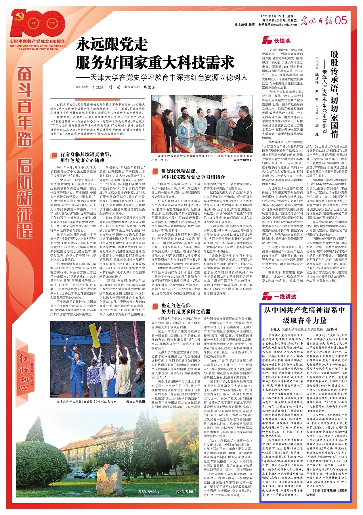 深入研究、領(lǐng)會(huì)中國共產(chǎn)黨精神譜系的豐富內(nèi)涵和時(shí)代價(jià)值,才能使理論宣講更生動(dòng)、更豐富、更深刻。4月,學(xué)校揭牌成立天津大學(xué)中國共產(chǎn)黨精神譜系研究中心。研究中心成立后,已形成《在歷史交匯點(diǎn)上》《從中國共產(chǎn)黨人的精神譜系領(lǐng)悟黨的百年歷史》等專著、研究論文和理論文章系列成果,并舉辦了“中國共產(chǎn)黨精神譜系”“弘揚(yáng)偉大建黨精神”等理論研討會(huì)。研究中心還赴上海中共一大會(huì)址、浙江嘉興南湖、河北西柏坡等地學(xué)習(xí)感悟,進(jìn)一步凝聚了校內(nèi)外開展中國共產(chǎn)黨精神譜系研究力量,推動(dòng)學(xué)術(shù)研究交流、理論宣講走向深入。
