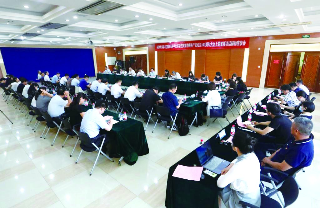 7月后,學校黨委把學習貫徹“七一”重要講話精神作為當前和今后一個時期的首要政治任務,發布了《中共天津大學委員會關于深入學習貫徹習近平總書記在慶祝中國共產黨成立100周年大會上的重要講話精神的通知》,切實把全校思想和行動統一到講話精神上來。7月1日,全校師生集中收聽收看了慶祝大會實況直播,共同見證了偉大歷史時刻。7月3日,校黨委常委會專題學習了習近平總書記“七一”重要講話精神,顏曉峰教授以“百年大黨開創民族復興輝煌未來的政治宣言”為題作了輔導報告。7月9日,學校召開學習貫徹習近平總書記“七一”重要講話精神座談會。本學期開學以來,學校繼續邀請理論名家,組織校內理論宣講團作精品輔導報告26項,面向師生開展更加深入的理論輔導;積極開展理論研究闡釋,圍繞“七一”重要講話精神,7月以來在《人民日報》《光明日報》《解放軍報》等媒體發表理論文章10余篇。全校各級黨組織通過理論學習中心組研討、支部學習、宣講培訓等多種形式,廣泛開展內容豐富、特色鮮明、針對性強的學習宣傳活動。