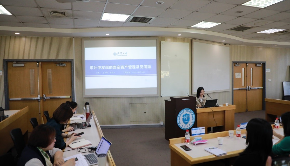 活動環節,審計處支部副書記胡萍首先介紹了我校的審計工作,包含審計處建制、職能等內容,強調內部審計具有內向性的特點;接著,從審計對象、審計內容、審計目標、經責審計的意義、我校經責審計工作等維度,圍繞經責審計的本質作了具體講解;在大家對審計實質有了清晰的認知后,從宏觀制度、機制健全性、科學性、有效性和微觀日常管理的若干方面,較系統地詮釋了審計關注與學院日常管理的關系,強調應在制度機制建立、聚焦核心職能履行、重視內部管理三個方面下功夫,以科學有效的管理推動賦能學院的健康發展和高效運行。隨后,審計處支部組織委員付曉宇就審計中發現的固定資產管理常見問題、注意事項及典型案例做了分享。最后,胡萍介紹了高端教育培訓相關審計工作,并與黨員同志進行了親切地交流與互動。