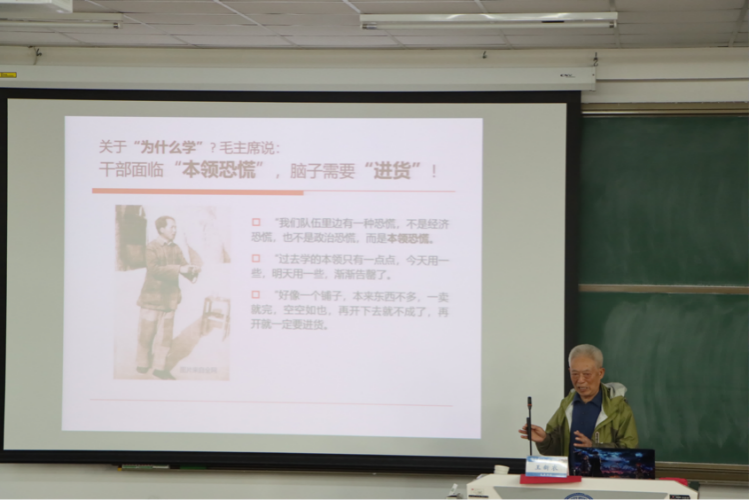 今年77歲高齡的王新農老師,作為校關工委理論組成員始終關心青年學生的成長。今年是建黨100周年,全黨開展黨史學習教育,王老師很早就開始精心準備黨課。此次黨課是學校關工委“學黨史”微黨課報告團的首場報告,后續關工委老同志將面向全校青年師生按照黨史學習教育的要求開展各種講座、報告、座談。