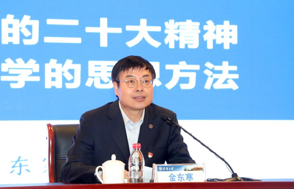 金東寒指出,黨的二十大是在全黨全國各族人民邁上全面建設社會主義現代化國家新征程、向第二個百年奮斗目標進軍的關鍵時刻召開的一次十分重要的大會。黨的二十大報告為新時代新征程黨和國家事業發展、實現第二個百年奮斗目標指明了前進方向、確立了行動指南,是黨和人民智慧的結晶,是黨團結帶領全國各族人民奪取中國特色社會主義新勝利的政治宣言和行動綱領,是馬克思主義的綱領性文獻。