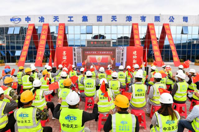 駐津央企中冶天工集團員工收聽收看大會開幕盛況。 周偉 攝