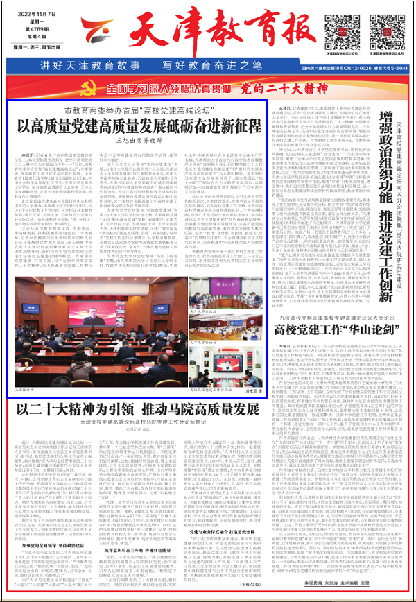 天津教育報頭版頭條:以高質量黨建高質量發展砥礪奮進新征程