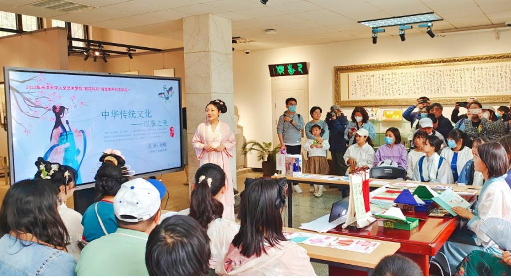 ——弘揚中華優秀傳統文化,以文化人、以美育人。舉辦“北洋大學與近代中國”學術研討會,用專業性研究成果來闡釋大學精神,助推學校“北洋大學與天津”歷史主題研究向更高質量和更廣空間發展;舉行《北洋大學與近代中國(第1輯)》首發式,面向校內外宣傳闡釋天大品格;以此為基礎,大學文化與校史研究所和天津市問津書院達成互建文化教育基地意向,并逐步開拓國內文化教育基地建設。學院黨委書記在天津大學世界校友大會文化論壇作“盛宣懷創辦北洋大學對中國高等教育的貢獻”主題報告,并接受常州電視臺采訪,與常州盛宣懷故居張太雷故居共建文化基地。凝聚精神,啟動院史館和院志建設。規劃建設美育工作坊等美育教學平臺,籌建美育實踐基地、美育浸潤空間。“傳統工筆畫基地”獲批天津市首批高校中華優秀傳統文化藝術傳承基地。學院堅持在學校重要節點發揮藝術滋養作用,在2022年國慶期間,舉辦教師藝術創作展、藝術采風寫生、中國古代工筆重彩名畫(復品)展、宋代點茶體驗等12項文化藝術主題活動;在海棠季中舉辦書畫研究會年展、《千里江山圖》賞析、漢服之美講座、師生書畫寫生活動等系列主題活動,傳習經典藝術,弘揚中華優秀文化,讓人文藝術之美浸潤校園。舉辦第21屆“春華杯”文學作品創作大賽,以文學作品書寫中國式現代化,讓馬克思主義基本原理飛入尋常百姓家。