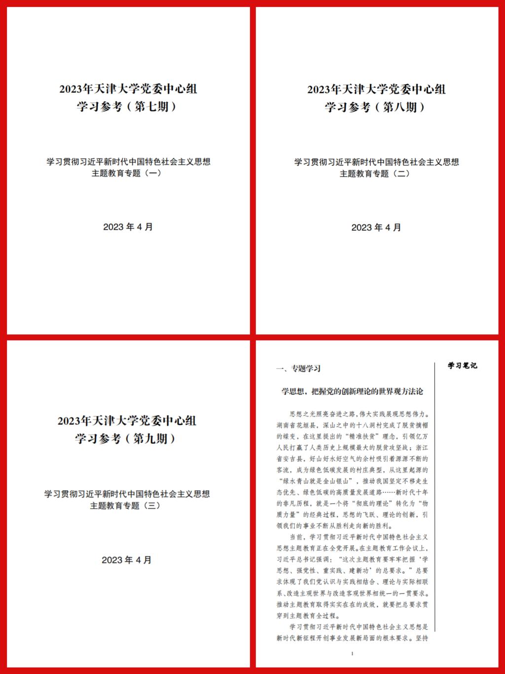 個(gè)人主動(dòng)學(xué)。學(xué)校黨委第一時(shí)間為黨員干部師生配發(fā)了《習(xí)近平著作選讀》《習(xí)近平新時(shí)代中國(guó)特色社會(huì)主義思想專題摘編》等主題教育學(xué)習(xí)書籍,專題編發(fā)了3期《天津大學(xué)黨委中心組學(xué)習(xí)參考》資料,通過(guò)學(xué)校“敬業(yè)湖”公眾號(hào)、“新思想”專欄等平臺(tái)推送理論文章、專家解讀等內(nèi)容,為個(gè)人理論學(xué)習(xí)提供良好條件。學(xué)校黨委領(lǐng)導(dǎo)班子成員帶頭制定了個(gè)人學(xué)習(xí)計(jì)劃,堅(jiān)持每天固定一個(gè)時(shí)段讀原著、學(xué)原文、悟原理,明確學(xué)習(xí)紀(jì)律要求,引導(dǎo)黨員領(lǐng)導(dǎo)干部把自主學(xué)習(xí)作為一種生活態(tài)度、一種工作責(zé)任、一種精神追求,抓在日常、落到實(shí)處。