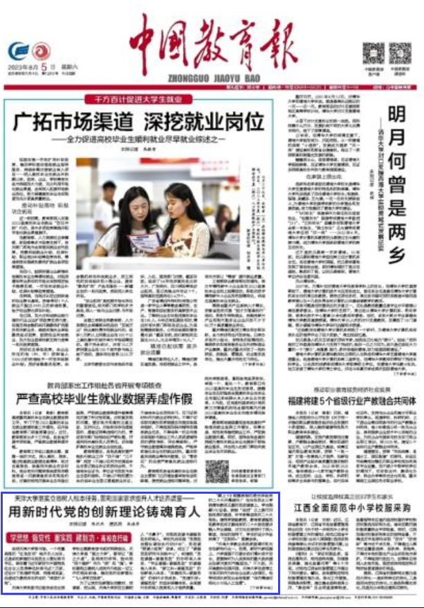 【主題教育】中國教育報(bào)頭版:天津大學(xué)用新時(shí)代黨的創(chuàng)新理論鑄魂育人