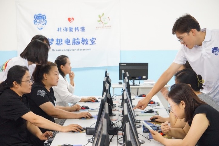 “京津冀如同一朵花上的花瓣,瓣瓣不同,卻瓣瓣同心。”推動基礎教育資源共享,共繪京津冀教育“同心圓”是習近平總書記牽掛多年的一件大事。在滄縣李屯小學,微機室內的電腦運行內存僅為1G,大部分電腦都已經年久失修,很難滿足學生們的學習需求,微機課上五個學生共用一臺電腦學習已經成為常態。這次,“北洋愛傳遞”團隊帶著50臺愛心再生電腦為李屯小學注入了新的活力。團隊為李屯小學搭建起夢想電腦教室,并以此為陣地開展“數字素質成長營”,為當地師生提供信息技術培訓,實現物質支持與知識教育雙重幫扶。