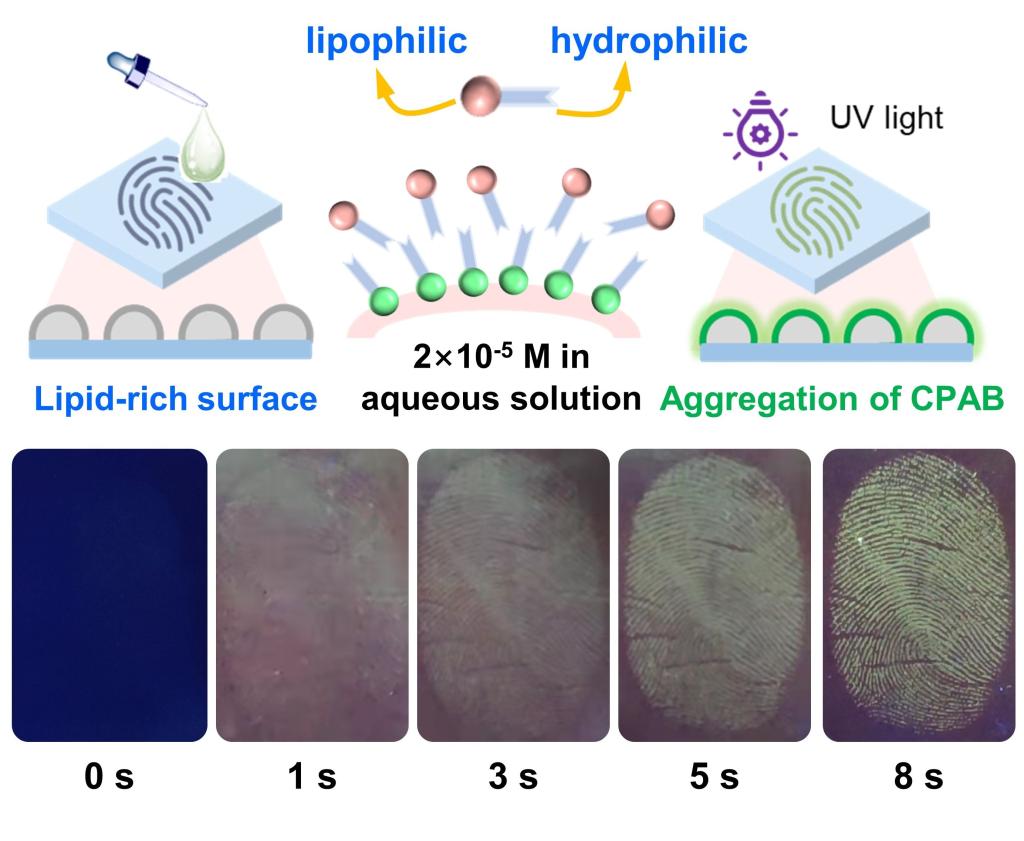 天津大學(xué)李振、謝育俊團(tuán)隊(duì)研發(fā)了一種新型兩親性指紋顯影劑。這種顯影劑在空氣中研磨可使其發(fā)光顏色產(chǎn)生變化,還可以自行恢復(fù);該顯影劑以水作為溶劑,不僅避免了對(duì)指紋精細(xì)結(jié)構(gòu)的破壞,而且在各種基質(zhì)均有良好的顯影效果。特別值得一提的是,該顯影劑不僅工作濃度低、顯影時(shí)間短,而且其獲得指紋顯影圖像的分辨率極高,對(duì)三級(jí)指紋細(xì)節(jié)尤其具有非常清晰的可視化效果。
