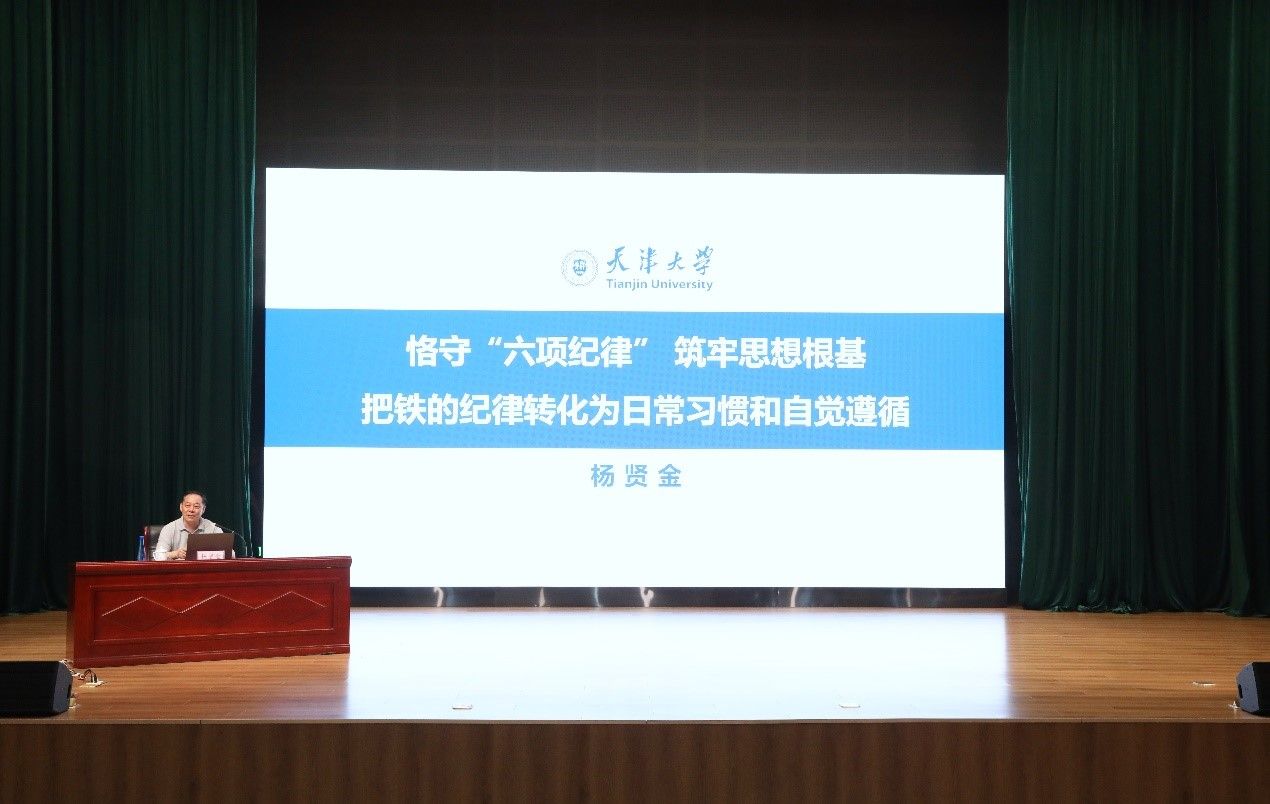 本站訊(記者焦德芳 攝影郭程)6月24日下午,按照學(xué)校黨委安排部署,校黨委書記楊賢金在北洋園校區(qū)茅以升廳為全體機(jī)關(guān)干部講授紀(jì)律黨課,黨課主題為:恪守“六項(xiàng)紀(jì)律”筑牢思想根基 把鐵的紀(jì)律轉(zhuǎn)化為日常習(xí)慣和自覺(jué)遵循。校黨委副書記韓慶華主持會(huì)議。