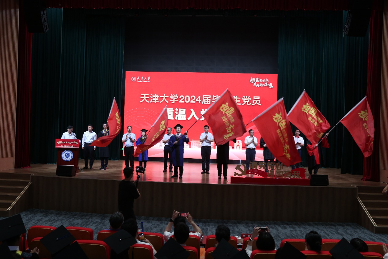 畢業生黨員中,有人即將扎根基層崗位服務人民,有人即將奔赴祖國西部教書育人,有人即將入職重點單位科研報國。會上,來自12個學院的畢業生黨員代表們從所在學院的院級黨組織書記手中接過書寫著“祖國的需要就是我的志愿”的紅色旗幟。他們將始終秉承“興學強國”的使命、“實事求是”的校訓、“嚴謹治學”的校風、“愛國奉獻”的傳統、“矢志創新”的追求,到基層和人民中去建功立業,讓青春之花綻放在祖國最需要的地方。理學院畢業生黨員李淵表示,“作為青年黨員,我將在未來的人生道路上,始終踐行“天大品格”,聽黨話、跟黨走,同心向黨,奔赴遠方,奮力書寫為中國式現代化挺膺擔當的青春篇章!”