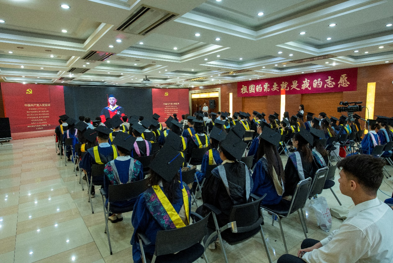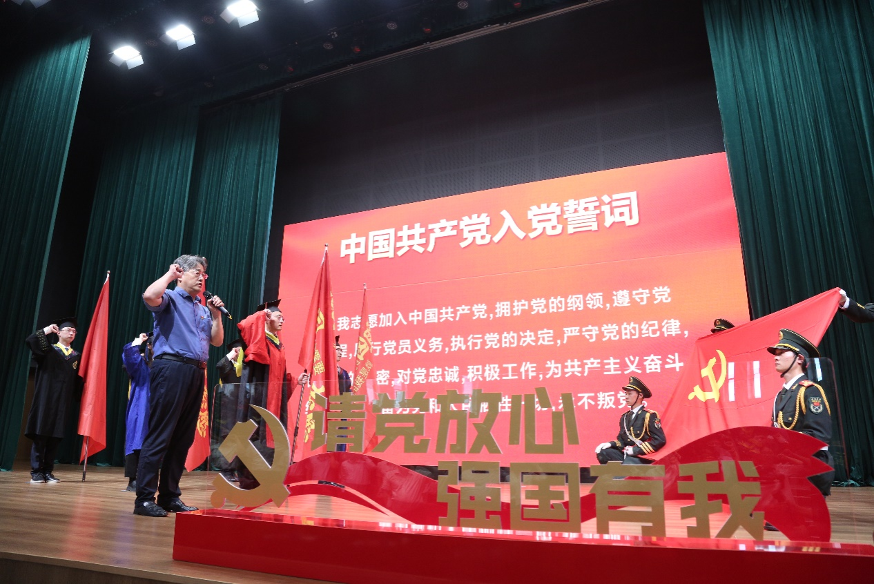 不忘初心,牢記使命。韓慶華帶領全體畢業生黨員代表重溫入黨誓詞。畢業生黨員代表們以“請黨放心,強國有我”的錚錚誓言,擲地有聲地表明自己將牢記初心使命,堅定理想信念,不負時代,不負韶華,不負黨和人民的殷切期望。